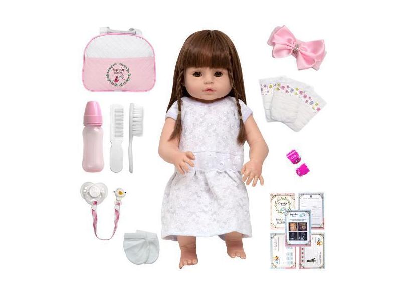 O menor preço encontrado no Brasil para Boneca Bebe Reborn Lindinha Enxoval Completo Kit Acessórios - Cegonha atualmente é R$ 171,99.