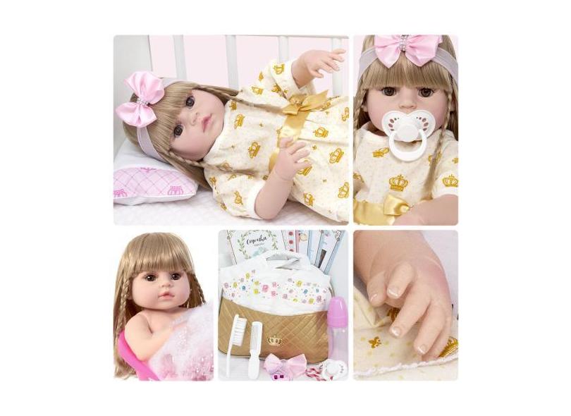 Boneca Bebê Reborn Loira Realista Pode Dar Banho + 20 Itens - Cegonha