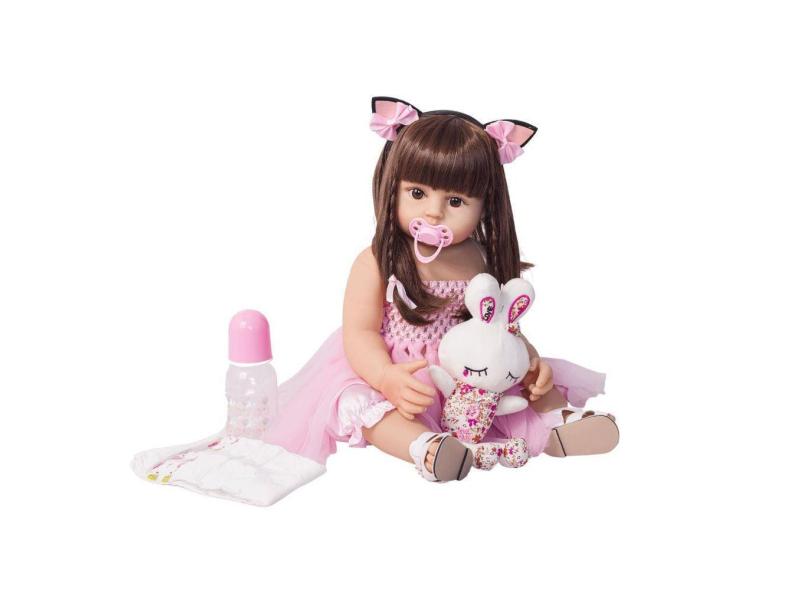 Boneca Bebê Reborn Menina Realista 100% Silicone 55Cm