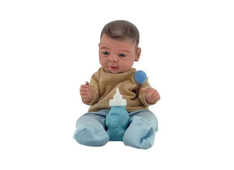 Boneca Bebê Reborn Realista Com Mamadeira Ursinho Azul - Milk Brinqued