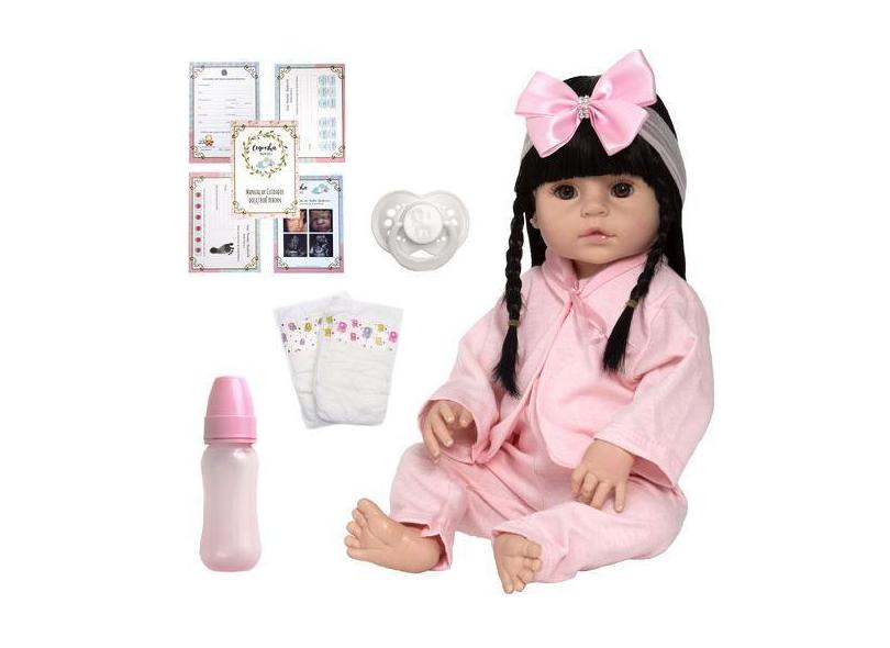 Boneca Bebê Reborn Realista Morena 100% Vinil 13 Acessórios - Cegonha
