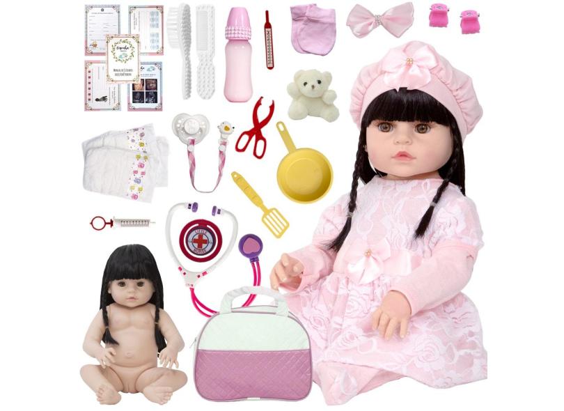 O menor preço encontrado no Brasil para Boneca Bebe Reborn Recem Nascida Morena Fofa com Itens Luxo atualmente é R$ 293,05.