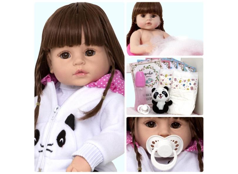Boneca Bebe Reborn Recem Nascida Silicone Panda Acessórios