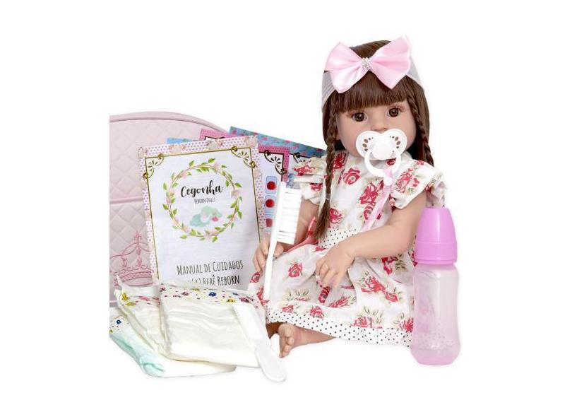 Boneca Bebe Reborn Silicone Vestido Florido Com Vários Itens - Cegonha