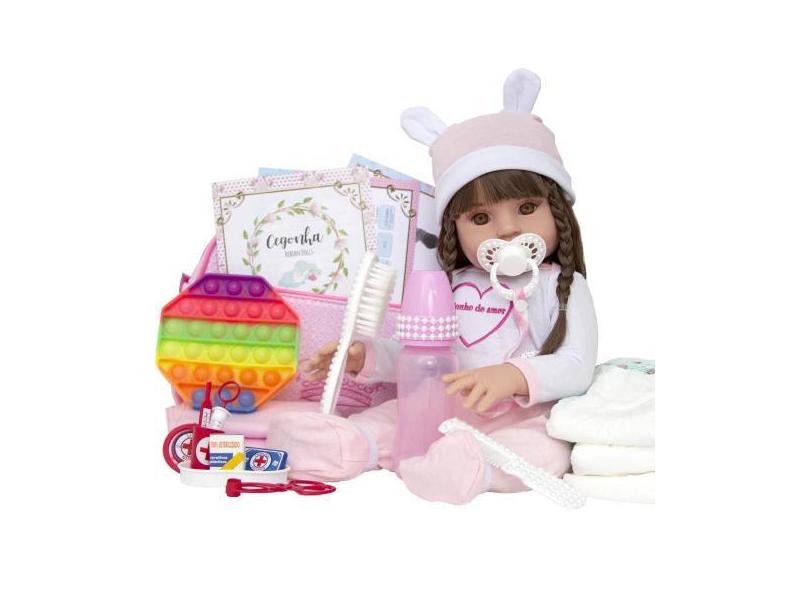 Boneca Bebe Reborn Sonho De Amor Silicone E Enxoval Luxo - Cegonha Reb