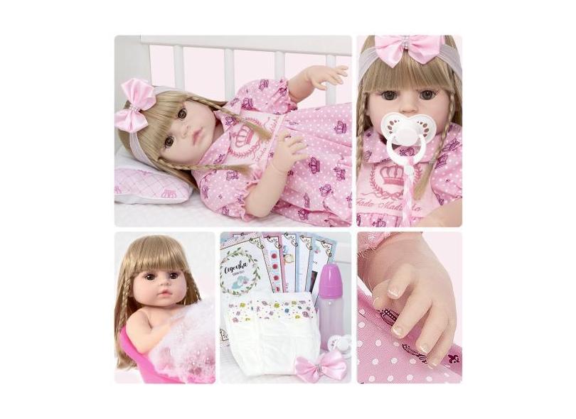Boneca Bebê Tipo Reborn Grande Laura Loira Pode Dar Banho - Cegonha Re
