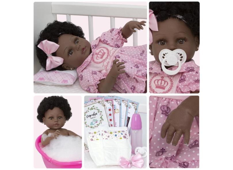 Boneca Bebê Tipo Reborn Menina Negra Linda Pode Dar Banho
