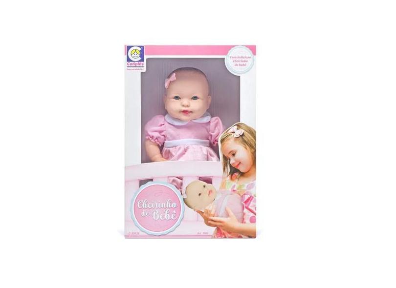 Boneca Cheirinho De Bebe Em Vinil 36cm Com Vestidinho Rosa Cotiplas -