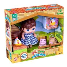 Boneca Com 3 Bichinhos Mini Fazenda Menina - Super Toys