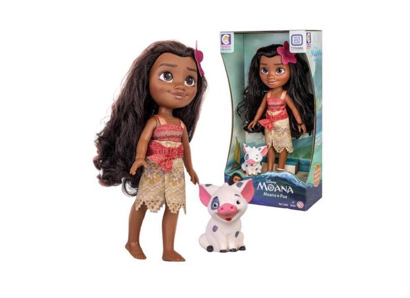 Boneca Disney Princesa Infantil Moana E Porquinho Pua 36cm Articulada