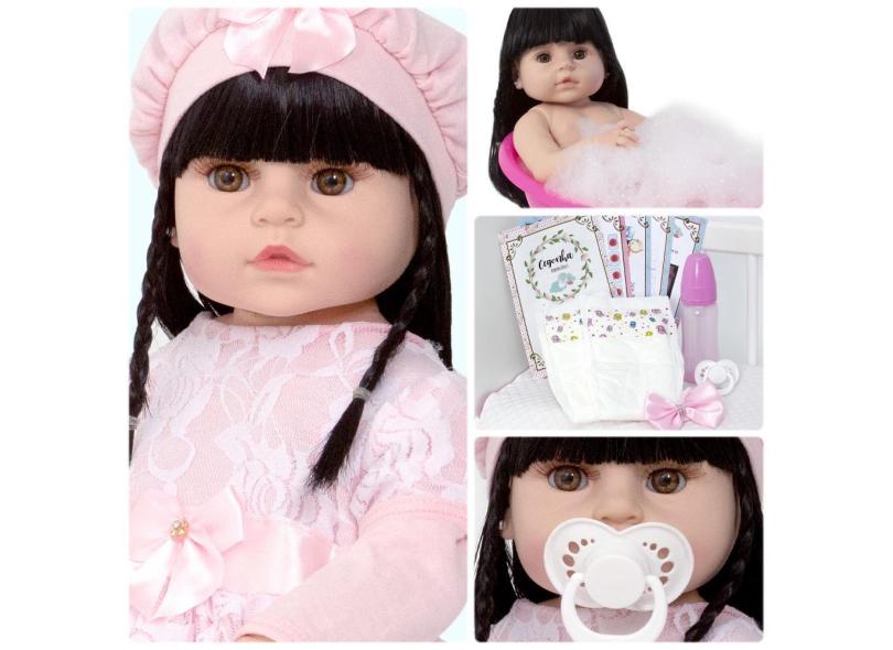 Boneca Estilo Bebê Reborn Baby Alive Bia Morena Cabelo Longo