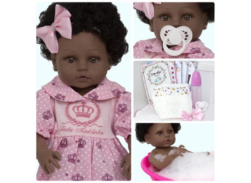 Boneca Estilo Bebê Reborn Baby Alive Menina Cabelo Cacheado