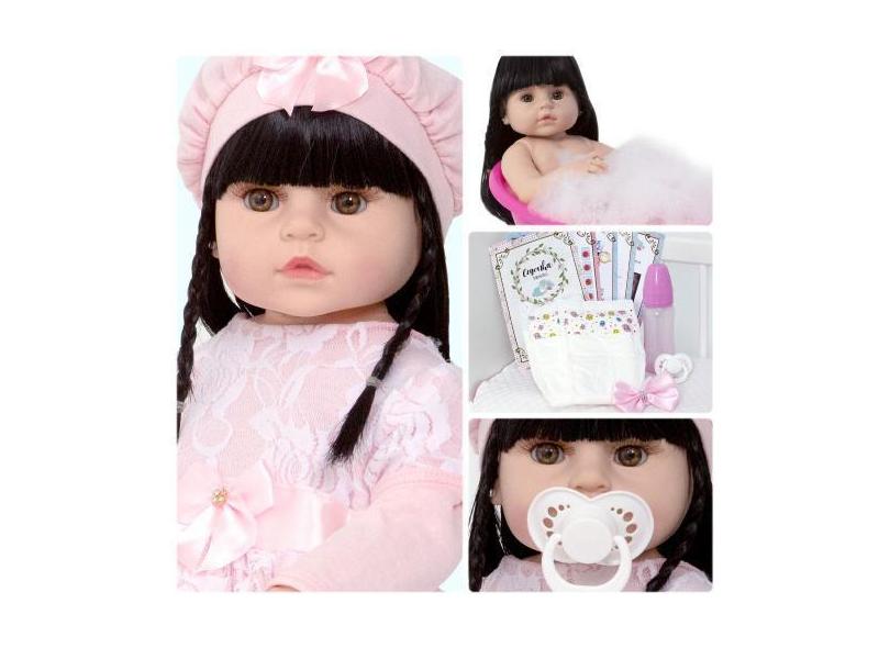 Boneca Estilo Bebê Reborn Bia Morena Cabelo Longo - Cegonha Reborn Dol