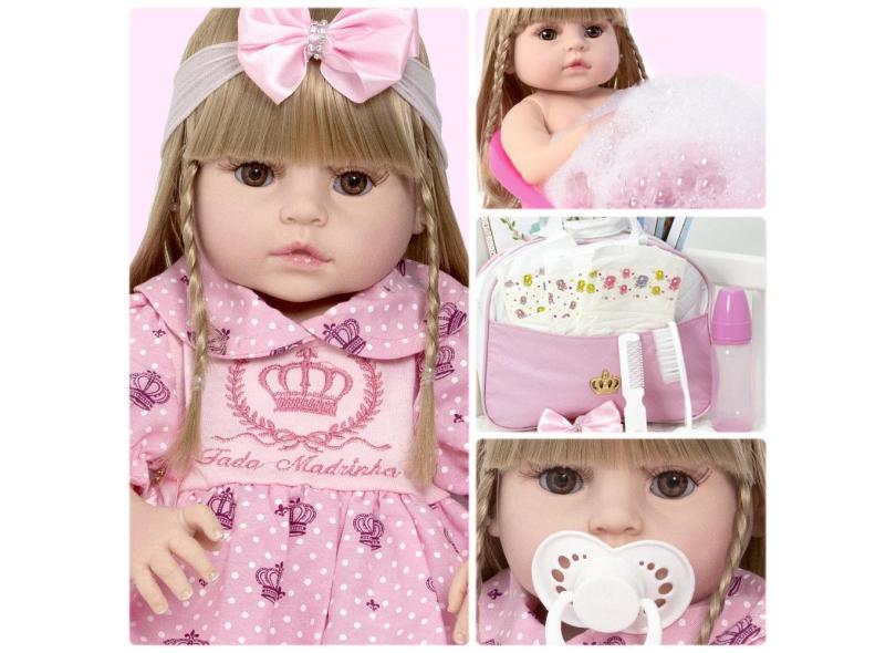 Boneca Estilo Reborn 52cm Menina Completa + Enxoval 20 Itens
