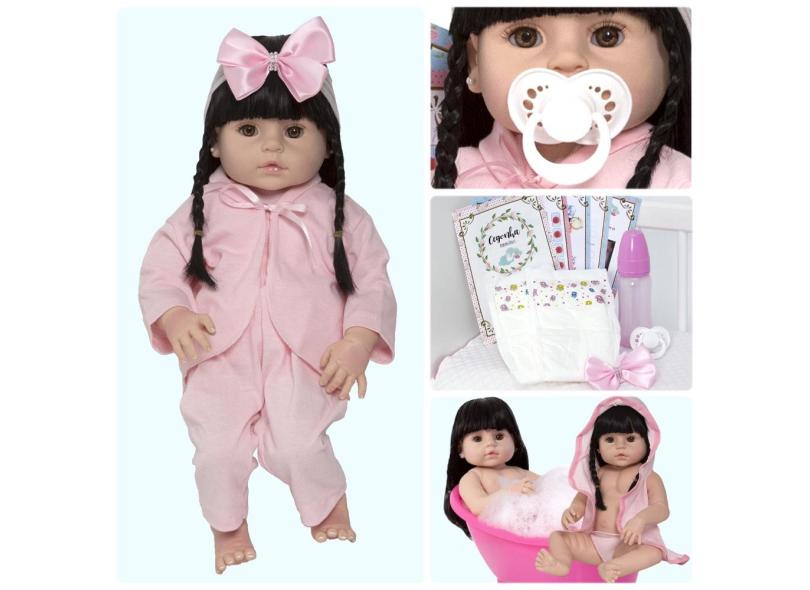 Boneca Estilo Reborn Baby Alive Cabelo Longo Morena Roupão
