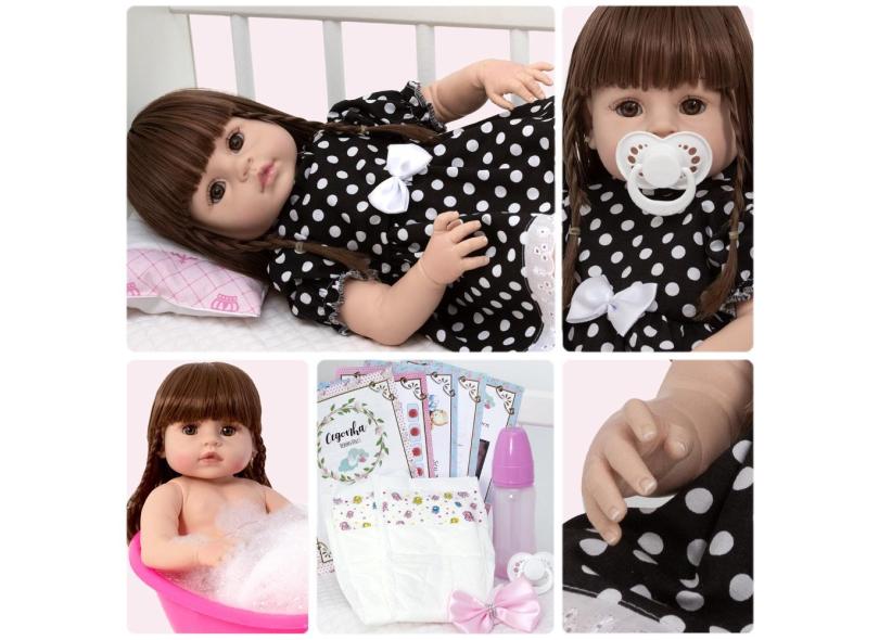 O menor preço encontrado no Brasil para Boneca Estilo Reborn Baby Gatinha Diversos Itens Enxoval atualmente é R$ 137,59.