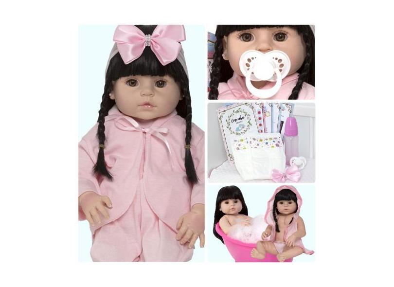 O menor preço encontrado no Brasil para Boneca Estilo Reborn Cabelo Longo Morena Roupão - Cegonha Reborn Dolls atualmente é R$ 146,19.