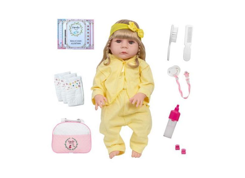 Boneca Estilo Reborn Loira Corpo De Vinil Bolsa 20 Itens - Cegonha Reb