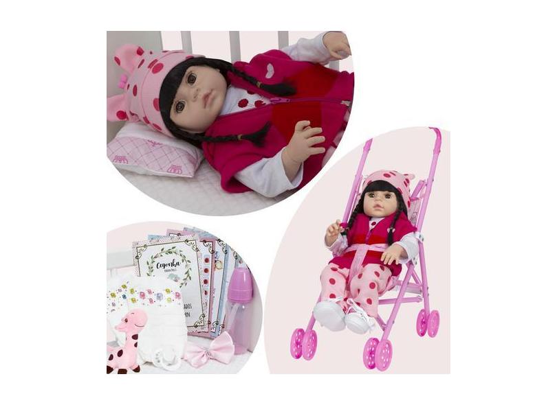 Boneca Girafinha Com Carrinho Reborn Completa Pode Dar Banho - Cegonha