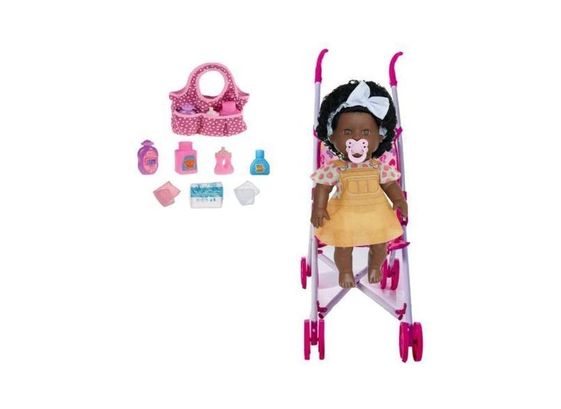 Boneca Infantil Bebê Negra Danadinha + Bolsinha e Carrinho - Milk Brin