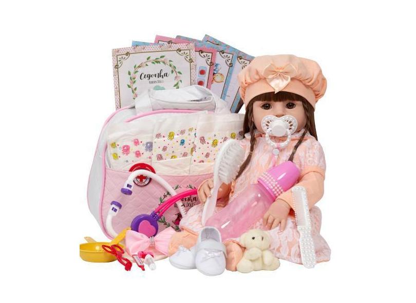 O menor preço encontrado no Brasil para Boneca Menina Estilo Reborn Vestido Salmão Bolsa Maternidade - Cegonha atualmente é R$ 257,99.