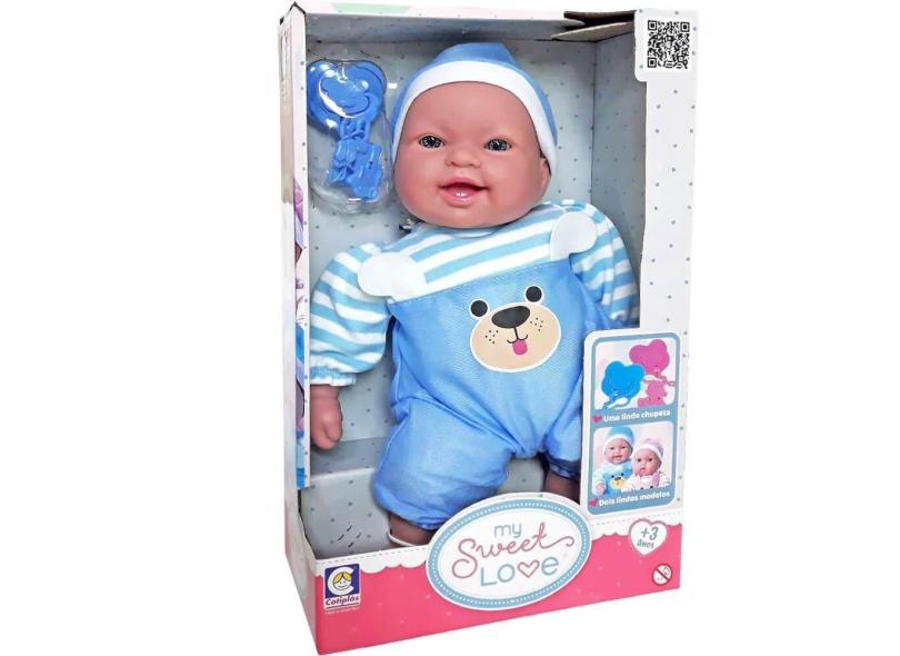 Boneca My Sweet Love Menino Macacao Azul 36Cm Cotiplas
