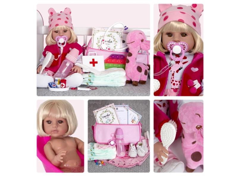 Boneca Pano Reborn Realista 20 Acessórios De Premium Enxoval