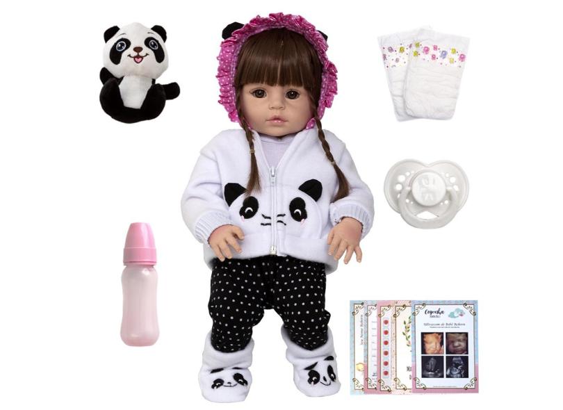 Boneca Reborn Abigail Pandinha Fofa Vários Itens Enxoval