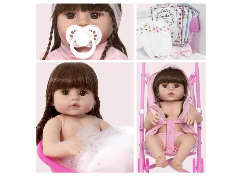 Boneca Reborn Baby Realista 46cm Pode Dar Banho Vários Itens