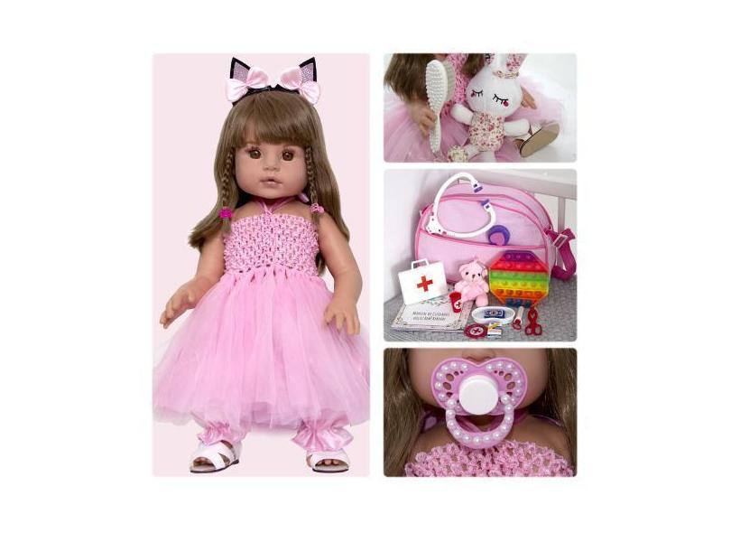 Boneca Reborn Bailarina Coelhinha Castanho Enxoval Completo - Cegonha