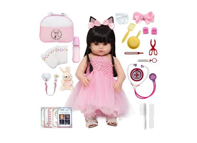Boneca Reborn Bailarina Morena 46cm Com Pelúcia 24 Itens - Cegonha Reb