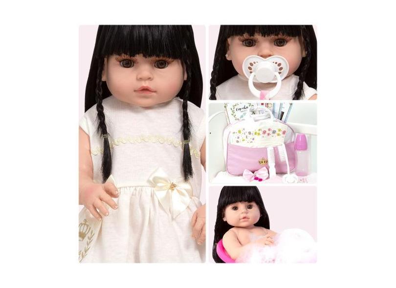 Boneca Reborn Barata Morena Vestido Bege Bolsa Maternidade - Cegonha R