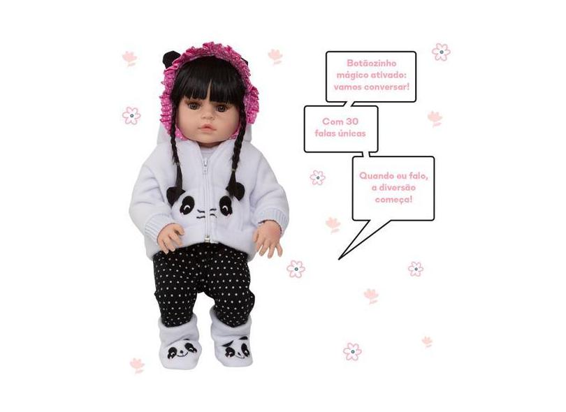 Boneca Reborn Barata Pandinha Morena 30 Frases Acessórios - Cegonha Re