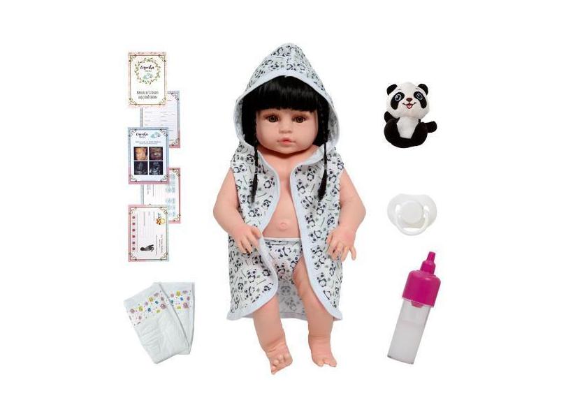 Boneca Reborn Bebê Corpo De Silicone Saída De Banho Panda - Cegonha Re
