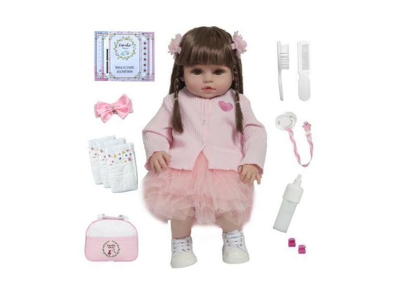Boneca Reborn Bebê Linda 100% Vinil Bolsa Acessórios - Cegonha Reborn