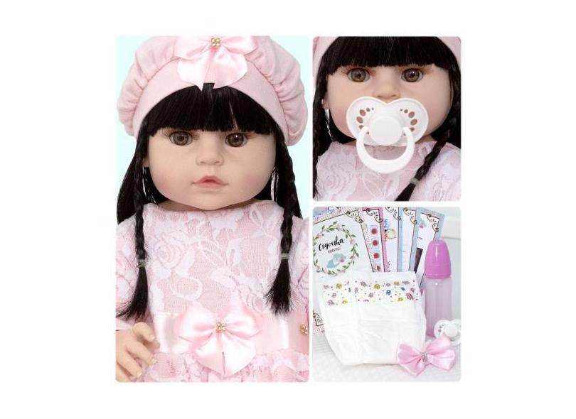 Boneca Reborn Bebê Morena 52cm Toda De Silicone Com Chupeta - Cegonha
