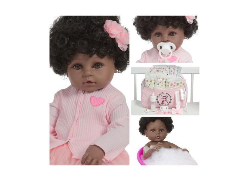 Boneca Reborn Bebê Negra Diva Corpo 100% Vinil Pode Banho - Cegonha Re