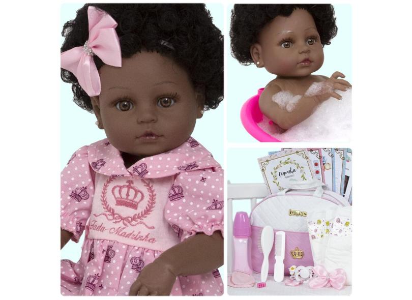 Boneca Reborn Bebê Negra Linda 100% Silicone 20 Acessórios