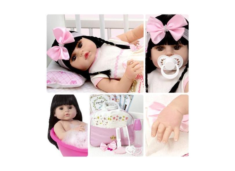 Boneca Reborn Bebe Realista Silicone Morena Enxoval Completo - Cegonha