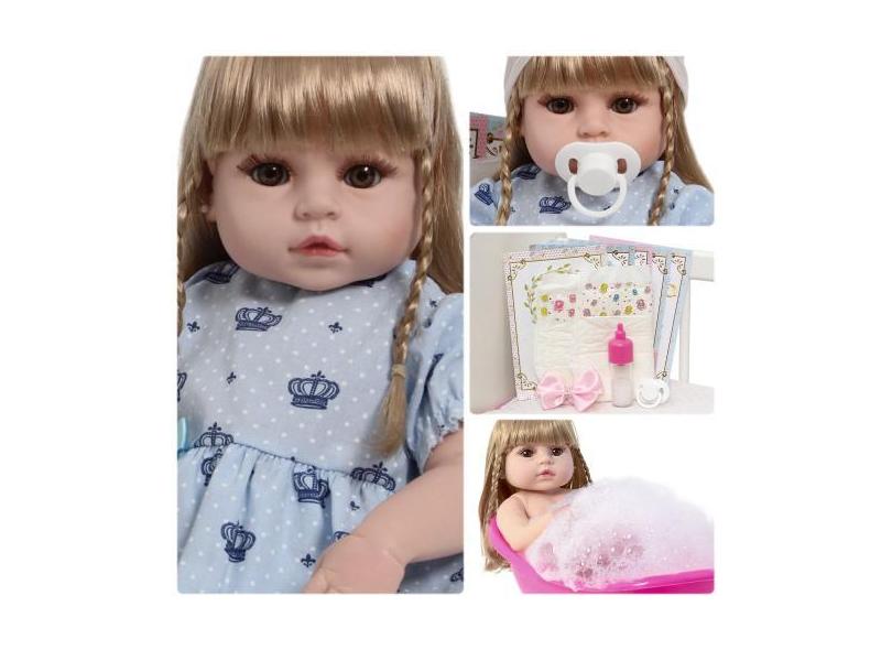 Boneca Reborn Bebê Valentina Loira 46cm Pode Dar Banho - Cegonha Rebor