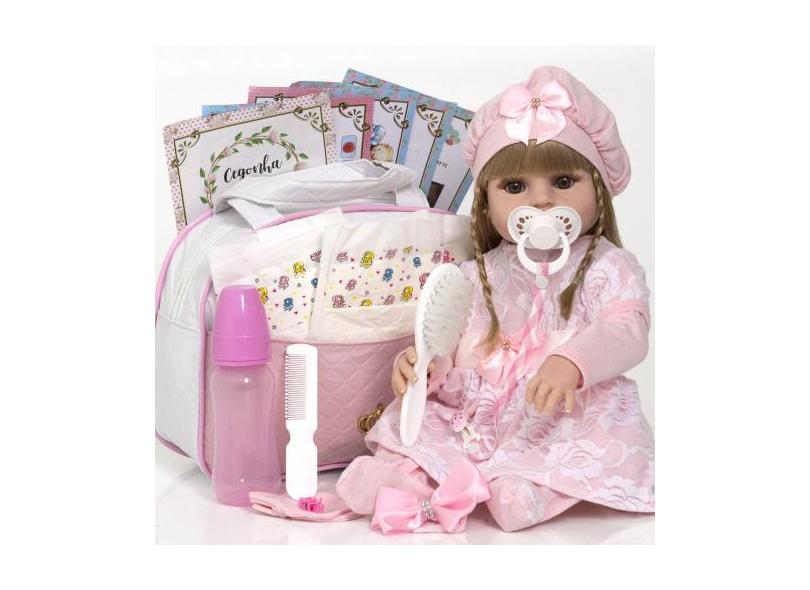 Boneca Reborn Bonita Real Loira Vinil Siliconado + 20 Itens - Cegonha