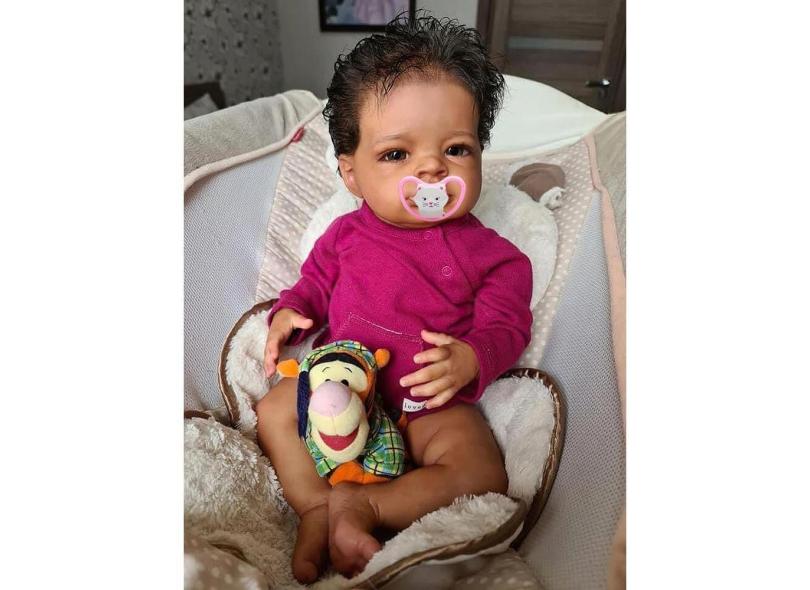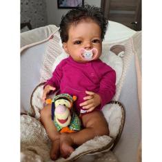 Boneca Reborn de 20 cm realista com cabelo enraizado à mão e pele escura
