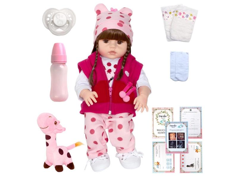 Boneca Reborn de Silicone Abigail Girafinha Cabelo Castanho