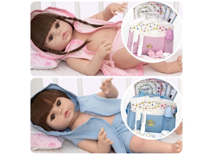 Boneca Reborn de Silicone Gêmeos Menina Menino Com Itens
