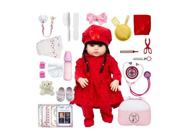 O menor preço encontrado no Brasil para Boneca Reborn Enxoval Completo Cabelo Longo 24 Acessórios - Cegonha Re atualmente é R$ 257,99.