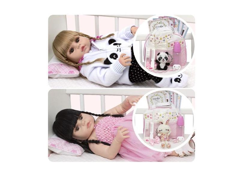Boneca Reborn Gêmeas Bailarina Panda Com Bolsa Acessórios - Cegonha Re