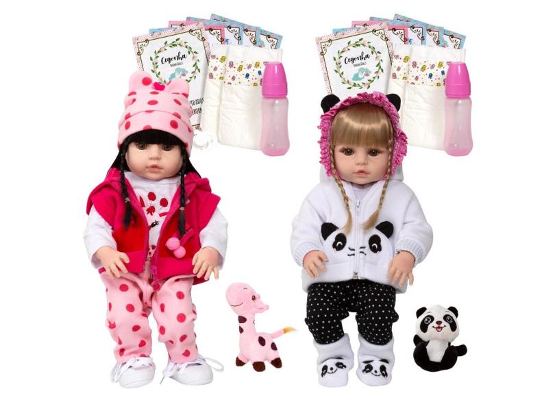 Boneca Reborn Gêmeas Girafa Panda 27 Itens Pode Dar Banho