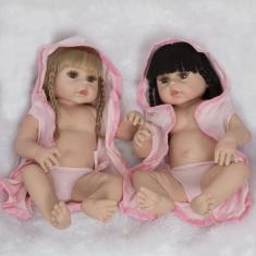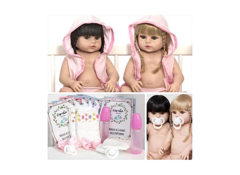 Boneca Reborn Gêmeas Loira Morena De Vinil + 26 Acessórios - Cegonha R