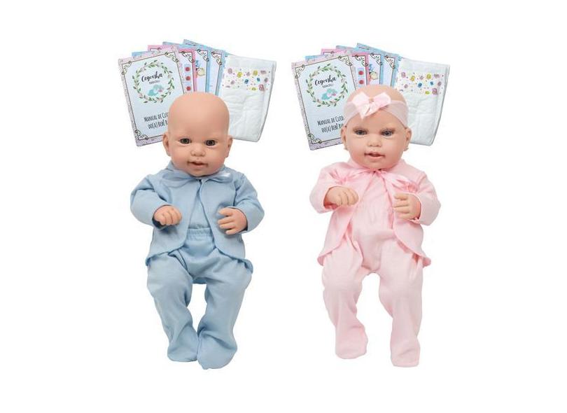 Boneca Reborn Gêmeos Realista Casal 43cm Com Kit Acessórios - Cegonha
