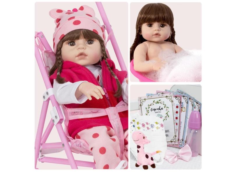 Boneca Reborn Girafa Bonita Enxoval Com Carrinho Dobrável